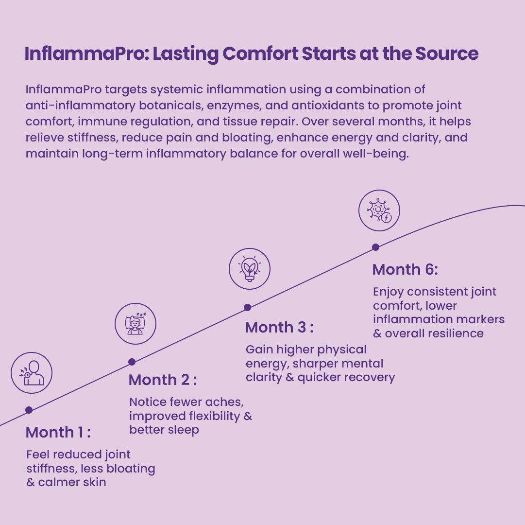Whether you’re dealing with occasional inflammation, recovering from an injury, or looking to support your overall joint health, Inflamma-Pro offers a natural, effective solution. With its powerful blend of enzymes, botanicals, and antioxidants, Inflamma-Pro helps your body manage inflammation, protect against oxidative stress, and promote healthy tissue repair.
